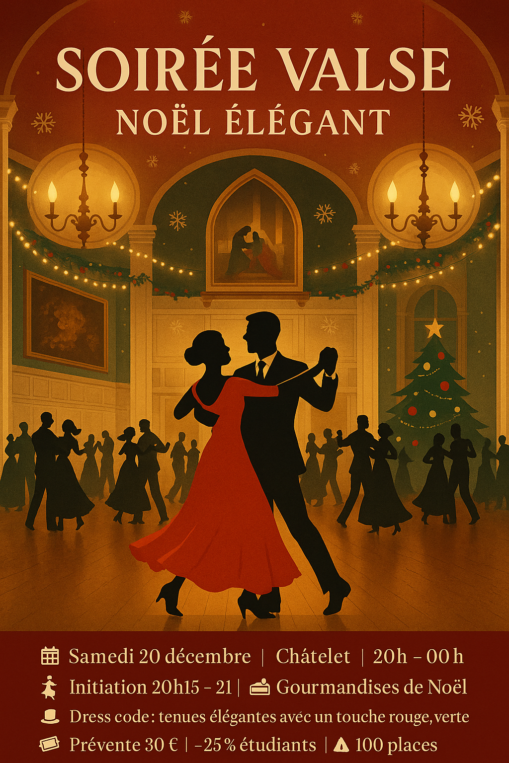👉 Réservez dès maintenant et laissez-vous porter par la magie d’une valse élégante et lumineuse, dans l’atmosphère unique d’un Noël dansant.
